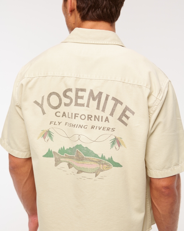 Short-Sleeve Graphic Workwear Button-Up Shirt