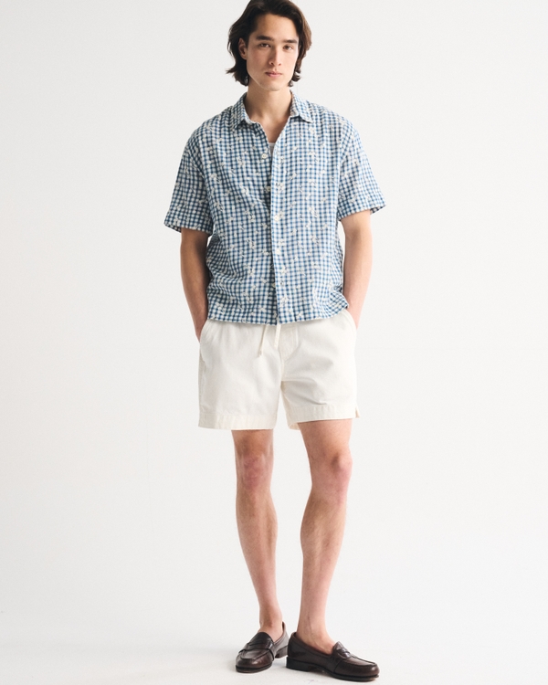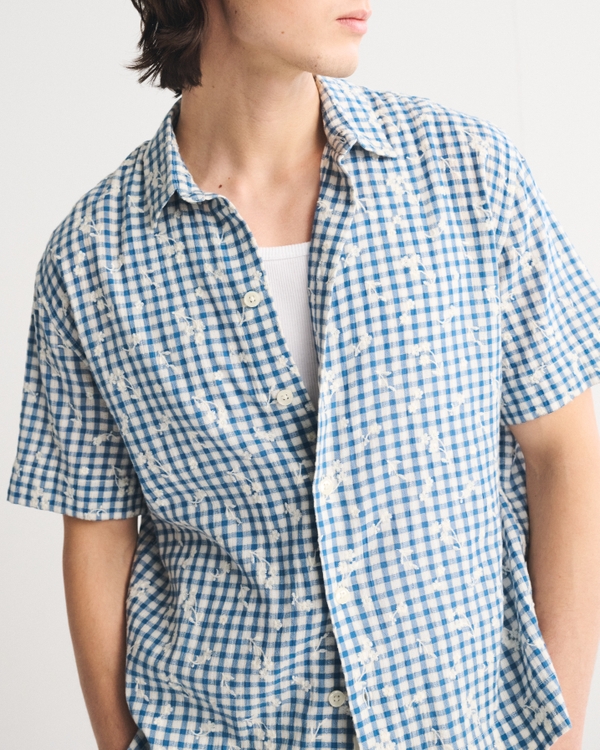 Short-Sleeve Gingham Button-Up Shirt
