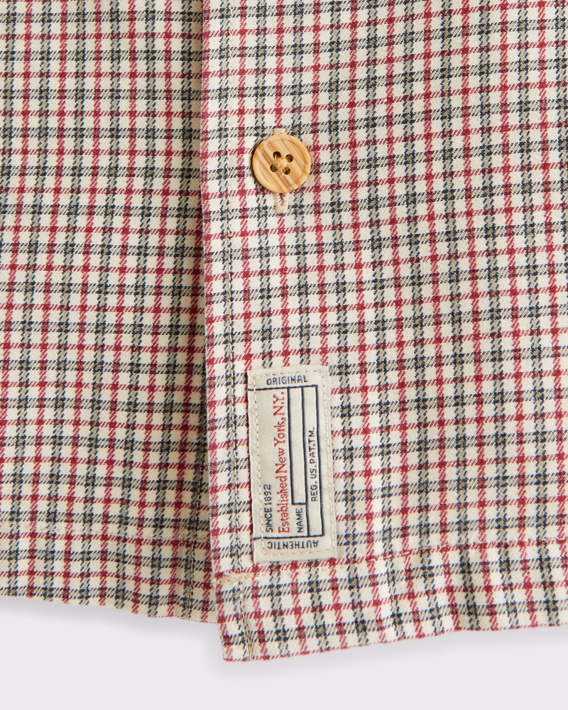 A new collection that celebrates our one hundred year history—inspired by our vintage archives and redesigned for today. This short-sleeve button-up shirt is in a soft twill fabric and relaxed-fit silhouette. Features a plaid pattern, classic collar and logo tag details at both the left chest pocket and straight hem. Imported.