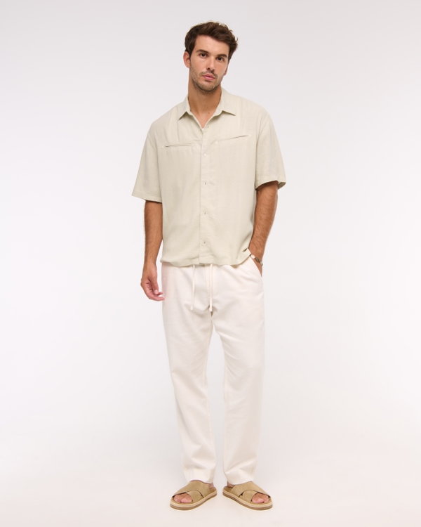 Short-Sleeve Summer Linen-Blend Button-Up Shirt