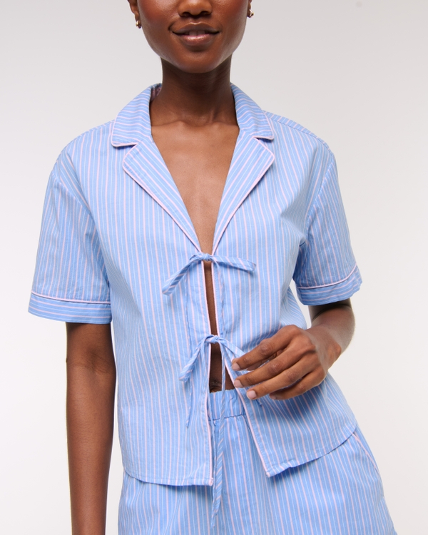 Short-Sleeve Tie-Front Sleep Shirt