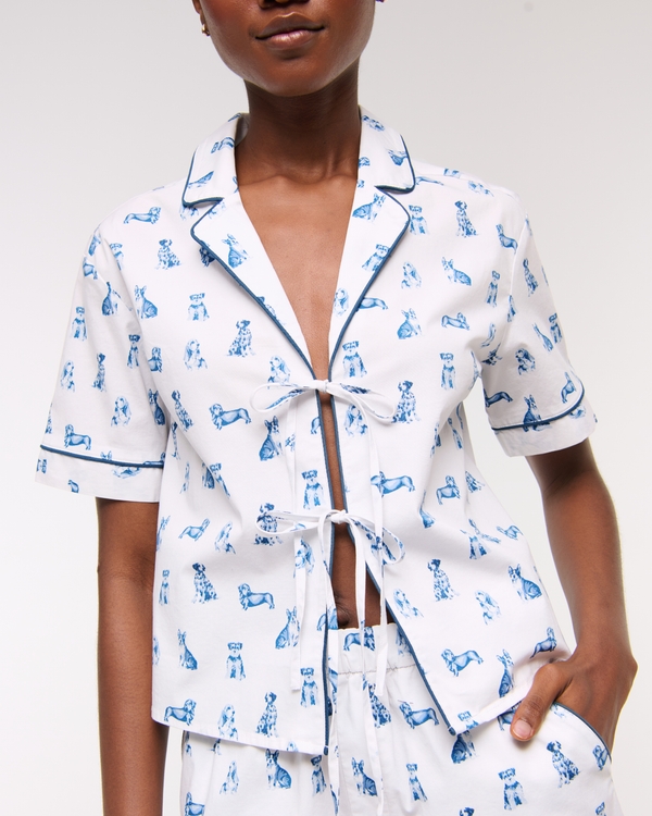 Short-Sleeve Tie-Front Sleep Shirt