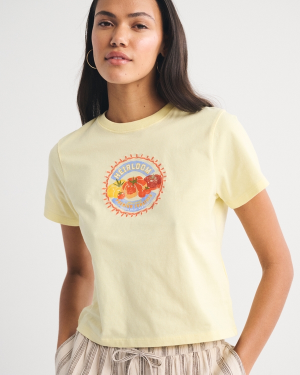 Slim-fitting short-sleeve tee in our softAF fabric and slightly slimmer fit, that hits above the hips. Features tomato-inspired embroidered graphic detail at chest and crew neckline. Imported.