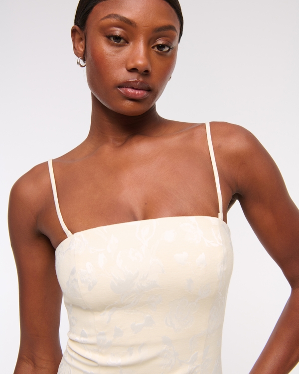 Flattering strapless maxi dress in our super soft brocade fabric, featuring removable straps, all-over textured floral details and a slimming skirt. Imported.
