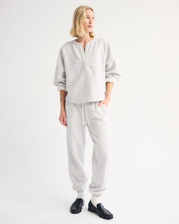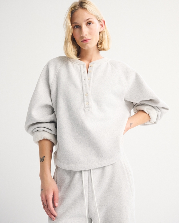Comfortable henley sweatshirt in our softAF fleece fabric and classic Sunday silhouette. Features a button-up neckline, seaming details, a curved hem and banded cuffs. Imported.