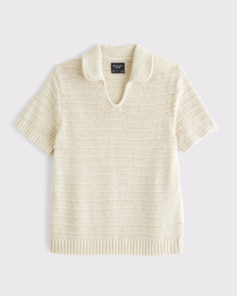 Textural Johnny Collar Sweater Polo