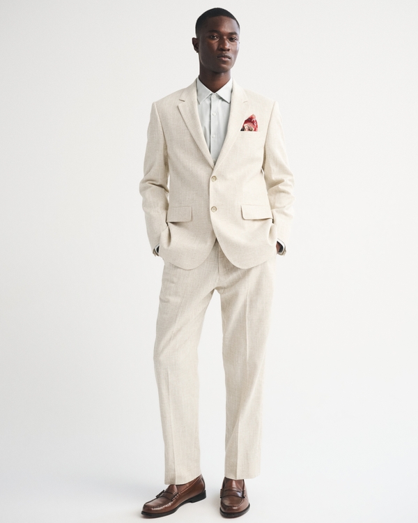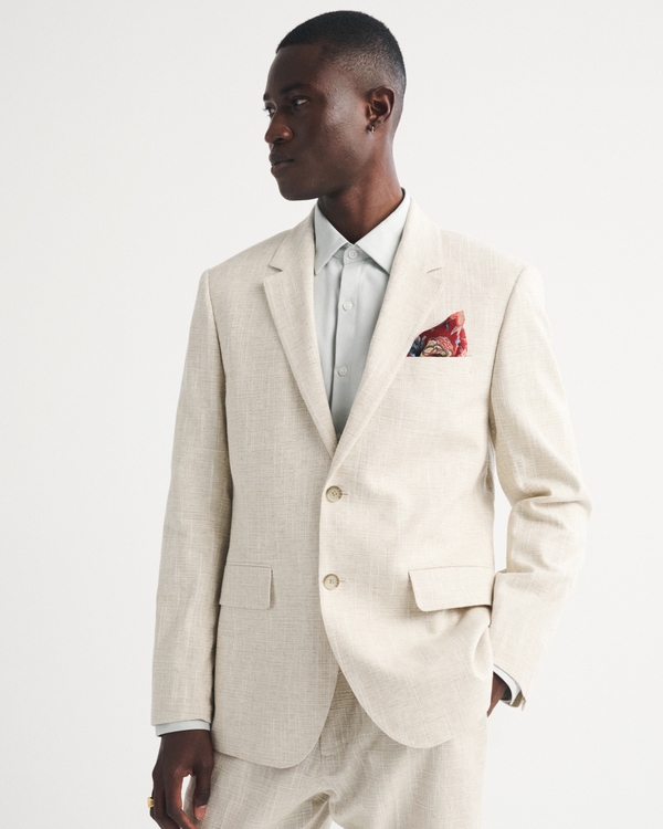 Our single-breasted blazer in a cotton-blend slub suiting fabric and classic-fit silhouette. Features a two-button closure, front pockets, lapels, concealed cuff buttons, back vents for added mobility and interior pocket for added convenience. Imported.