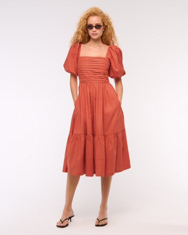 The A&F Emerson Linen-Blend Puff Sleeve Midi Dress