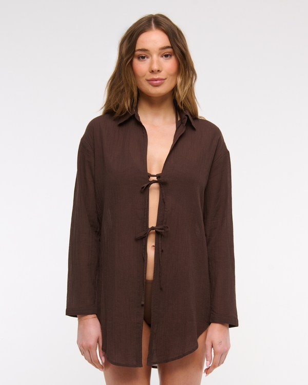 Tie-Front Shirt Dress Coverup