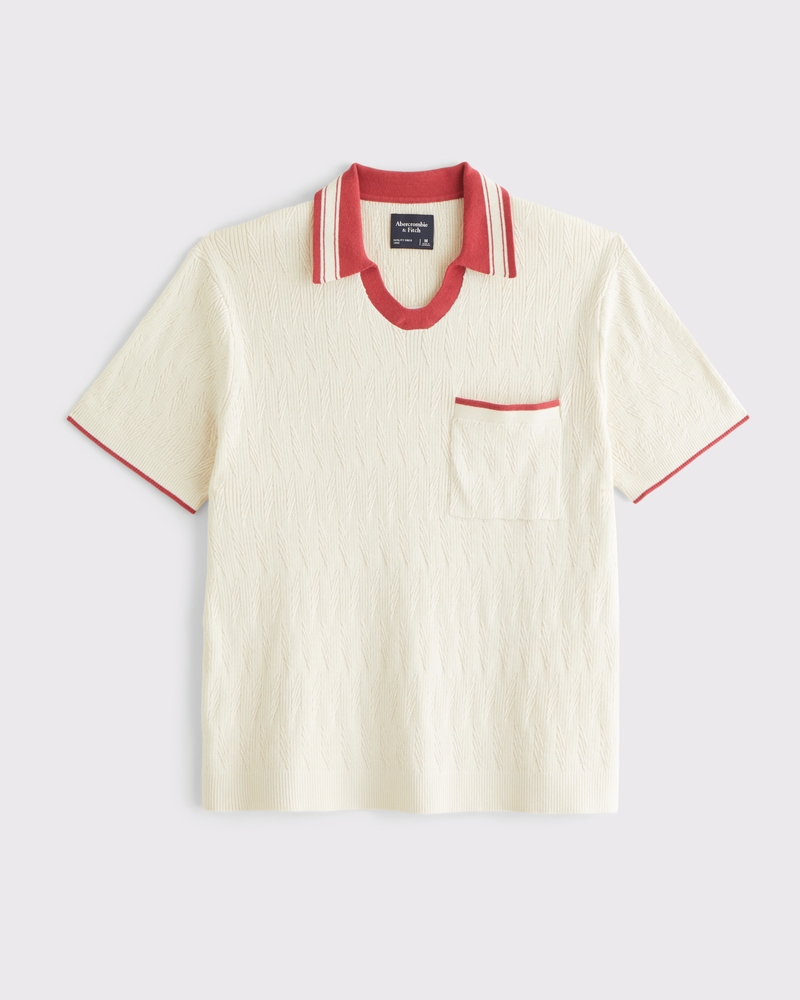 Lightweight short-sleeve sweater polo in our soft sweater-knit fabric and relaxed-fit silhouette. Features a left chest pocket, varsity-inspired details, textural stitching details throughout, a no-button Johnny collar and banded hem and cuffs. Imported.