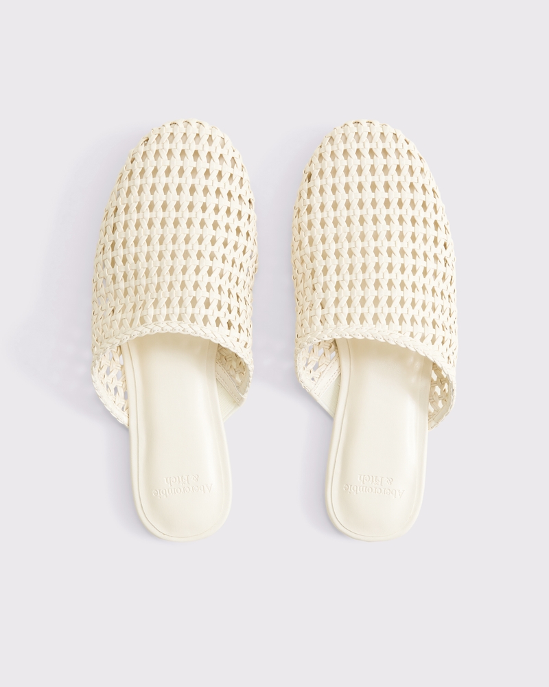 Our mule-style flats in a soft woven fabric, with a slight heel, plush footbed and interior lining. Imported.