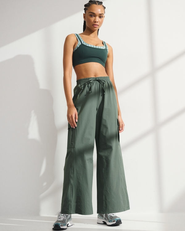 Our high rise active pants in our lightweight, drapey crinkle nylon fabric. Features an elasticated waistband, pockets and a balloon-leg silhouette, with adjustable ties at the hem to convert to a wide leg. Imported.