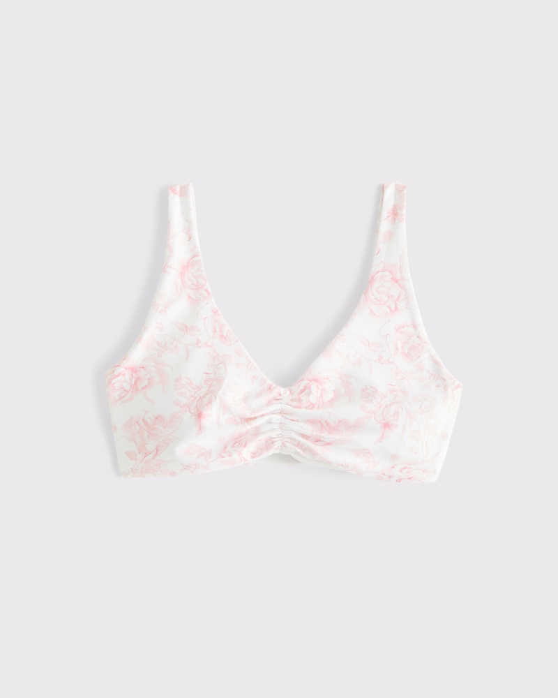 Our slim-fitting sports bra in an active fabric and Curve Love fit, designed for cups D-F. Curve Love includes fuller bust support with a proportionally smaller band size. Our fabric is lightweight, buttery soft and nonrestrictive providing a barely there feel, it moves with you during low impact activity and is also great for all-day wear. Features scrunch detail and removable pads. Imported.