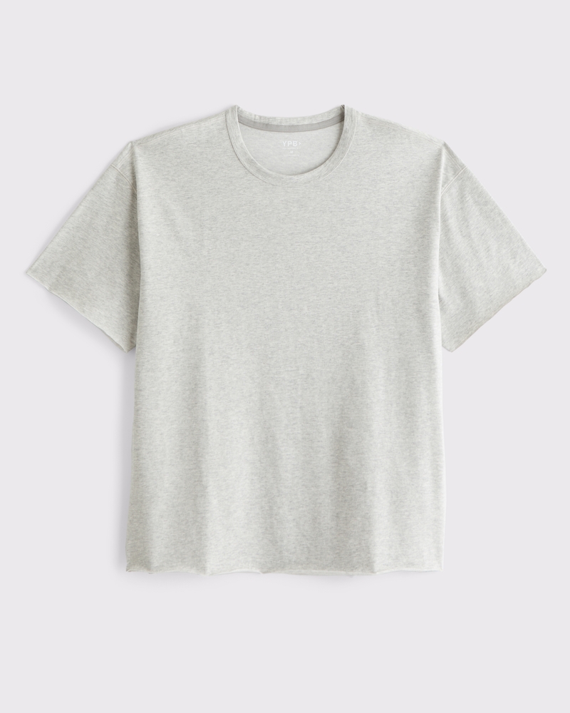 Our easy-fitting short-sleeve active tee in our performance cotton fabric, that's super soft and breathable with moisture-wicking properties, and a relaxed-fit cropped silhouette. Features shoulder seaming details for extra mobility and a flattering look, crew neckline, cropped length and cutoff hem. Imported.