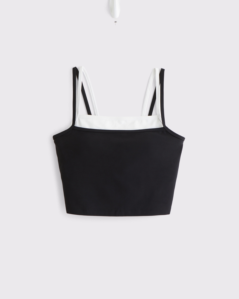 Our slim-fitting scoopneck tank in our studioFLEX active fabric. Our studioFLEX fabric is lightweight, buttery soft and nonrestrictive providing a barely there feel, it moves with you during low impact activity and is also great for all-day wear. Features on-trend double-layer detail and removable pads. Imported.
