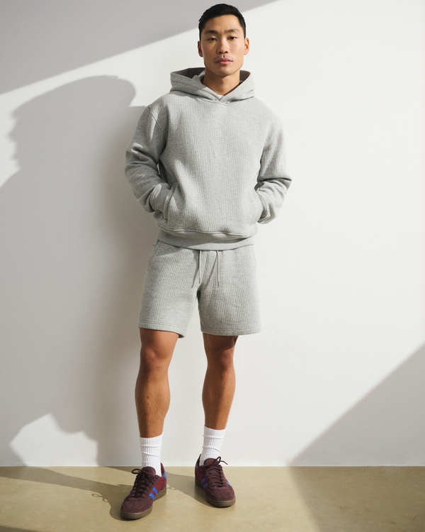 Comfortable active popover hoodie in our new textured ribbed fabric, that's super soft with a more oversized silhouette. Designed with a smooth interior and hood for style and warmth, front pockets with a hidden zipper pocket and interior seamless locker loop. Imported.